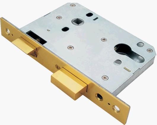 二、锁底:锁底主要起封闭作用,其结构很类似锁壳。锁底和锁壳对应铆接处都钻了圆孔,以便和锁壳铆合封闭,在锁环扳手开启定位处弯起了定位加强筋,以加强定位处的强度。